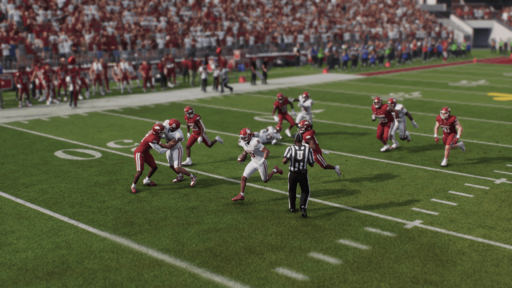 Oklahoma overwhelmed Arkansas from the opening quarter forward, rolling to a 49–13 win that felt inevitable long before halftime. The Sooners scored touchdowns on six of their first eight possessions, stretched the field vertically, and punished Arkansas in the run game with efficiency and patience rather than desperation.