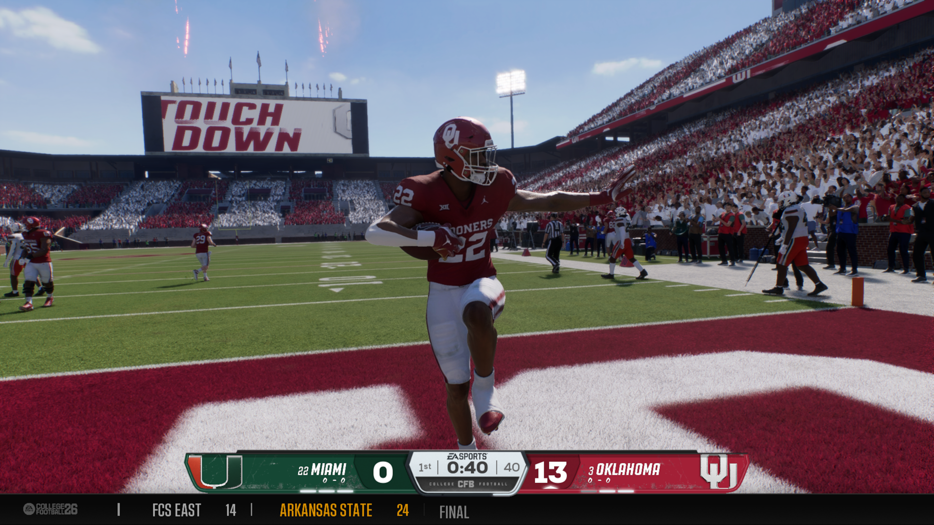The Sooners scored touchdowns on six of their first seven meaningful possessions, building a 28–7 halftime lead that never felt fluky. Oklahoma spread the field horizontally and vertically, forcing Miami to defend every blade of grass.